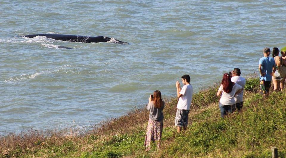 É comum o avistamento de Baleias em vários pares de mãe e filhote, próximos a costa, devido a espécie nadar na costa em seu período de reprodução, sendo possível ver movimentos que evidenciam comportamentos como a exposição da enorme nadadeira peitoral quando virada com o ventre para cima, ou mesmo espetaculares saltos para fora da água, realizados com frequência tanto por filhotes, como também por adultos, enfim; Um show que merece ser visto, bem perto da praia e costões.